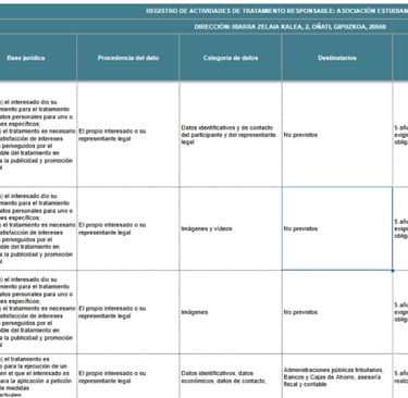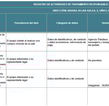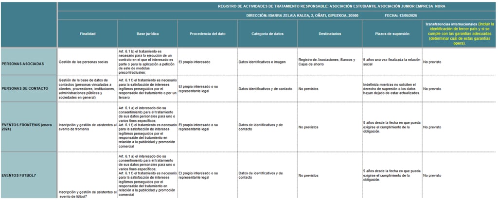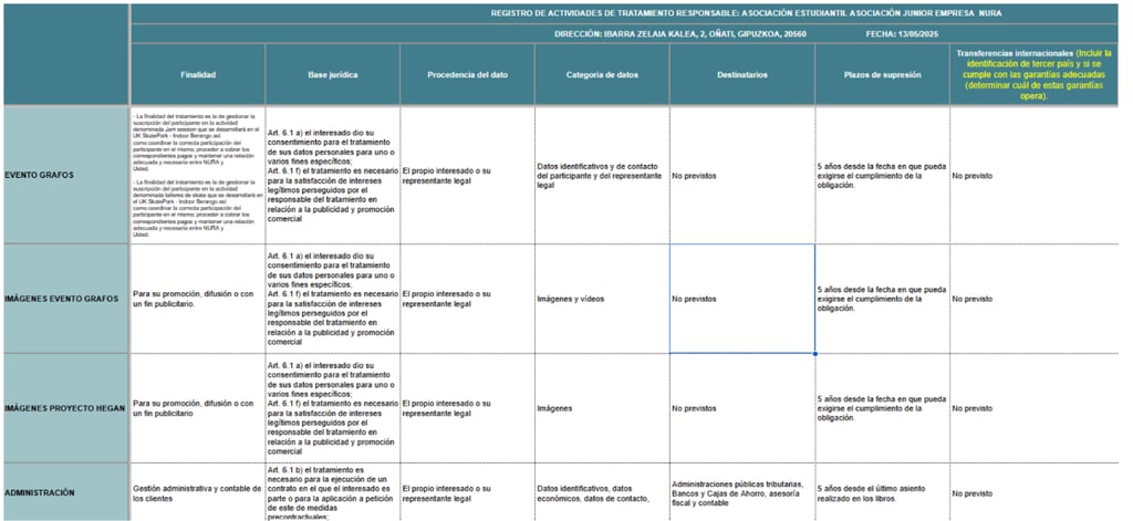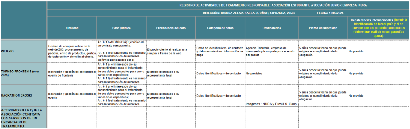 NURA has a Record of Treatment Activities where each of the following treatments carried out as data controller are detailed: