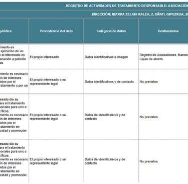 NURA dispone de un Registro de Actividades de Tratamiento donde se detallan cada uno de los siguientes tratamientos realizados como responsable de tratamiento: